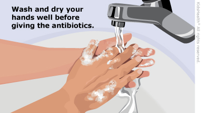 You'll have help with your child's IV antibiotics from a home care company. Often, home antibiotics are given through a type of IV catheter called a peripherally inserted central catheter, or PICC line. It's much longer than a regular IV catheter and goes all the way up to a vein near the heart or to just inside the heart. Usually, a home care nurse changes the PICC line dressing and does any lab work your doctor has ordered. The nurse will also check the area around the PICC line for any signs of infection.