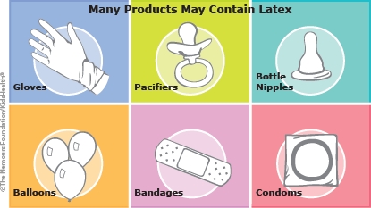 The sap of the rubber tree used to make latex products contains proteins that can cause an allergic reaction in some kids.