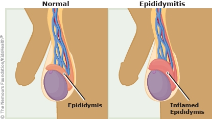 Epididymitis (ep-uh-did-ih-MYE-tiss) happens when the epididymis gets swollen and inflamed. The epididymis (ep-uh-DID-ih-miss) is the coiled tube at the back of the testicle.