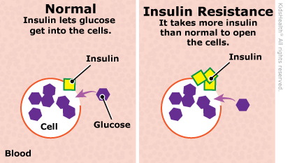 Insulin resistance is when the cells of the body don't respond well to the hormone insulin. Insulin works like a key to "open" cells so glucose can enter them. When a person has insulin resistance, the body has to make more insulin to help glucose get into the cells. Glucose (sugar), the main source of energy that keeps our cells working, comes from food.
