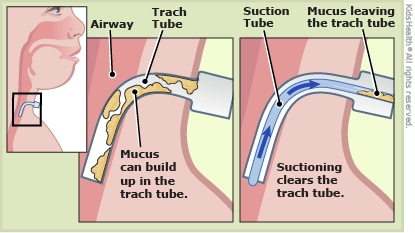 Tracheostomy (tray-kee-OSS-tuh-me) tubes, or trach tubes, sometimes get blocked with thick mucus. When this happens, it is hard for a child to get enough air into the airway (trachea). A child with a blocked trach tube can have a hard time breathing. The mucus needs to be cleared out of the trach tube to keep the airway open.