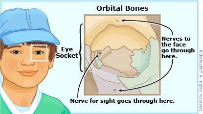 An orbital fracture is a break in one or more of the small bones around the eye that form the eye socket. They happen from a strong blow to the face, usually to the eyebrow and cheek. Treatment depends on the size and location of the break and whether there is also an injury to the eye or nearby muscles, nerves, or tissues. Sometimes surgery is needed.