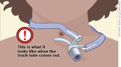 Your child's care team showed you how to care for your child's trach tube and how to deal with emergencies, such as replacing the tube immediately if it comes out.
