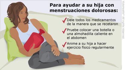 Las muchachas con dolores menstruales tienen calambres en la zona inferior del abdomen o la espalda. El dolor puede comenzar justo antes de que se inicie la mentruación (período) y continuar durante los primeros días de la mentruación. Si bien los dolores menstruales son frecuentes, pueden ser tan fuertes que les impiden a las niñas ir a la escuela, estudiar o dormir.
