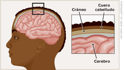 ¿La inflamación del cuero cabelludo indica que hay una inflamación en el cerebro? No, la inflamación del cuero cabelludo no significa que haya una inflamación en el cerebro. El cráneo separa el cuero cabelludo del cerebro y lo protege de las lesiones.