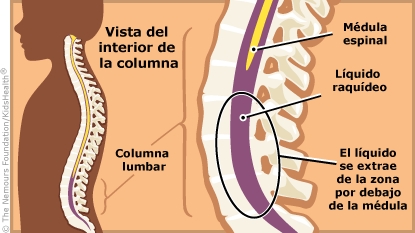 Su hijo fue sometido a una punción lumbar y ya está listo para ir a su casa. Es posible que el profesional del cuidado de la salud le haya dado medicamentos a su hijo para que pueda relajarse durante el procedimiento, por lo que puede estar un poco somnoliento. Es posible que su hijo tenga un leve dolor de cabeza o sienta alguna molestia en la espalda, en el lugar donde se realizó la punción lumbar. Estos síntomas deberían desaparecer unas horas después de haber hecho la punción lumbar.