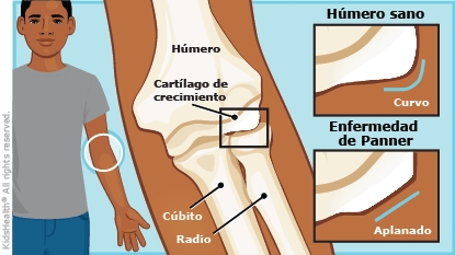 La enfermedad de Panner es la inflamación e irritación del cartílago de crecimiento del codo. Los cartílagos de crecimiento son capas de cartílago en los extremos de los huesos, donde se produce la mayor parte del crecimiento óseo. Los niños con enfermedad de Panner sienten dolor en el codo. El codo también puede estar rígido o hinchado. La curación puede tardar varios meses, pero la mayoría de los niños no tienen problemas a largo plazo.