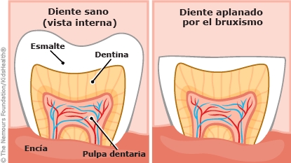 El término médico "bruxismo" significa rechinar los dientes. Puede ocurrir durante el día o por la noche. Muchos niños rechinan los dientes, pero la mayoría de ellos deja de hacerlo cuando crece. Pero, a veces, pueden surgir problemas por rechinar mucho los dientes. Puede ayudar a su hijo a controlar el bruxismo para evitar los problemas.