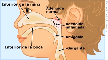 El agrandamiento del tejido adenoideo es común en los niños pequeños. Puede tratarse de una afección continua (crónica) o de un efecto pasajero por combatir una infección. Es probable que los niños con tejido adenoideo agrandado ronquen, respiren por la boca, tengan congestión nasal o nariz que gotea, tengan un sueño agitado, dejen de respirar durante unos segundos mientras duermen o hablen como si les estuvieran tapando la nariz. Los niños que tienen el tejido adenoideo agrandado durante un tiempo prolongado tienen más probabilidades de tener infecciones reiteradas del oído.