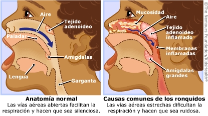 ¿Qué son los ronquidos? Los ronquidos son el sonido de la vibración de la garganta (se mueve muy rápidamente hacia uno y otro lado) cuando pasa el aire. Los ronquidos son más comunes durante el sueño, cuando los músculos de la parte posterior de la garganta se relajan, lo que hace que la vía aérea se estreche y la respiración sea más ruidosa.