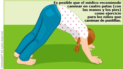 Cuando un niño camina apoyando la punta del pie (el antepié), sin que los talones entren en contacto con el piso, se dice que "anda de puntillas". Es habitual que los niños pequeños que están aprendiendo a caminar lo hagan de puntillas. La mayoría de los niños dejan de caminar de puntillas por sí solos antes de cumplir los 2 años. Si el niño tiene más de dos años de edad, los ejercicios y tratamientos suelen ayudar.