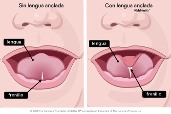 La lengua anclada (también llamada "anquiloglosia") se produce cuando el frenillo (una banda de tejido que conecta la parte inferior de la lengua con el piso de la boca) impide que la lengua se mueva libremente. A menudo, la lengua anclada no causa ningún problema y no requiere tratamiento. Sin embargo, en algunos bebés, puede causar dificultades para alimentarse y, posteriormente, problemas del habla.