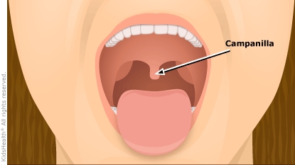 La uvulitis es la inflamación (enrojecimiento e hinchazón) de la úvula. La úvula, coloquialmente conocida como "campanilla", es el trozo carnoso de tejido que cuelga en la parte posterior de la garganta. Los niños con uvulitis generalmente tienen dolor de garganta. Es posible que tengan fiebre, tos, estén afónicos o quizás digan que sienten como si tuvieran algo atascado en la garganta.