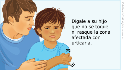 La urticaria se caracteriza por ronchas o zonas elevadas de color rojo en la piel y que causan picazón. En los tonos de piel más oscuros puede ser más difícil notar los cambios de color. A medida que la urticaria desaparece en algunas zonas después de horas o días, suele aparecer en otras áreas de la piel. "Crónica" significa que su hijo ha tenido urticaria la mayoría de los días durante al menos 6 semanas. La urticaria crónica suele desaparecer, aunque esto puede llevar mucho tiempo. Con frecuencia, los medicamentos ayudan a los niños con urticaria a sentirse mejor.