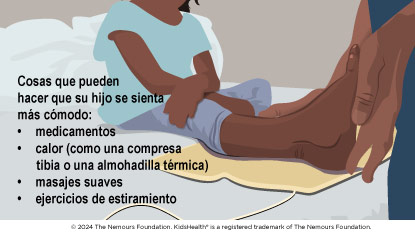 Los dolores de crecimiento son dolores que los niños suelen sentir en las piernas al finalizar el día o durante la noche. Se sienten como un dolor o un calambre. Son más frecuentes en los niños en edad preescolar y escolar. Los dolores de crecimiento no son graves y suelen desaparecer por sí solos a medida que el niño crece.